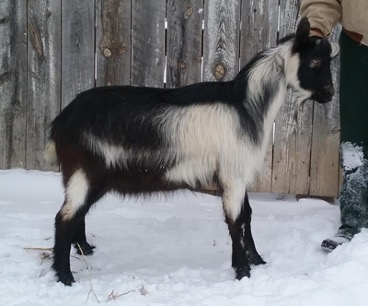 I admit that a broken sundgau catches my eye, helping Magnolia to remain a keeper. This doe kid combines two lines that I think are incredibly strong–longevity and balance from Medesima, a beautiful udder in Magdalene, uphill and smooth topline from KJ, lovely balance to the head from Singed, and elegance from Legs. Others were also impressed with this doe, as she won her dry leg as a junior kid, and then placed 3rd in the Junior Kid class at the 2017 ADGA National Show. Magnolia has freshened with a very high, tight, and correct udder. Sold 2019.