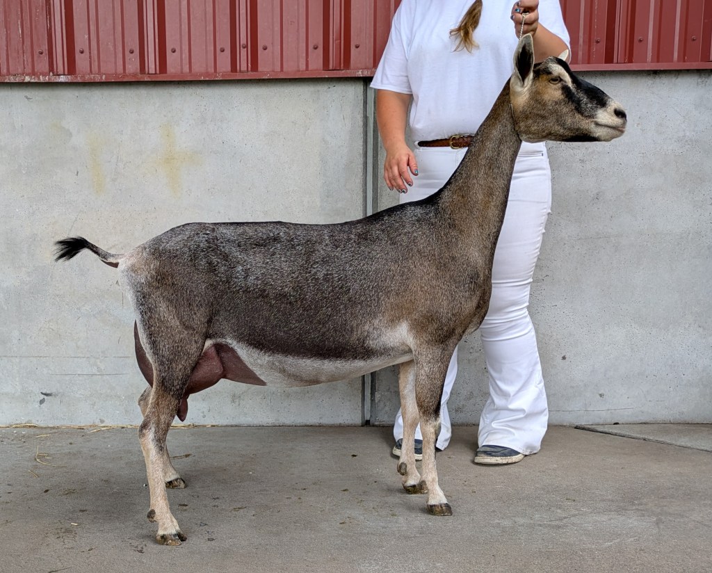 She arrived with a more unusual color, she is correct, her attitude is easygoing. We look forward to seeing how her udder develops!