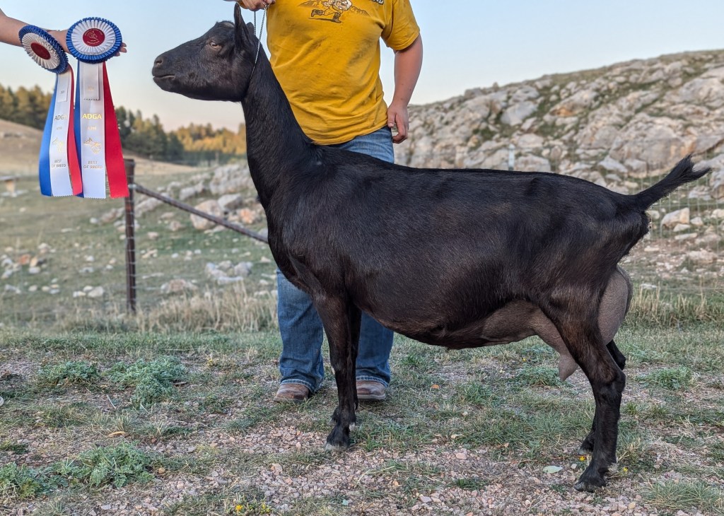 Notes: LA is Linear Appraisal, a service provided by the American Dairy Goat Association to classify animals. Scores are listed by age (years-months), final score (of a maximum 100, highest live goat is a 95), then a letter to indicate General Appearance, Dairy Strength, Body Capacity, and Mammary System (E is excellent, V is very good, “+” or G is good, A is average, F is fair, and P is poor).